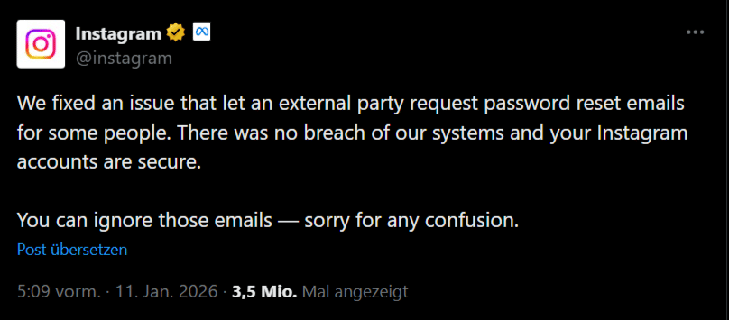Hast du auch am Wochenende Instagram Mails zum Zurücksetzen deines Passworts bekommen? Ich auf jeden Fall und das Problem scheint nun behoben zu sein. Datenmissbrauch gab es wohl auch keinen und alle sind Konten sicher. Passwort mal wieder ändern und unbedingt Zwei-Faktor-Authentifizierung (2FA) aktivieren, kann trotzdem nicht schaden 😉